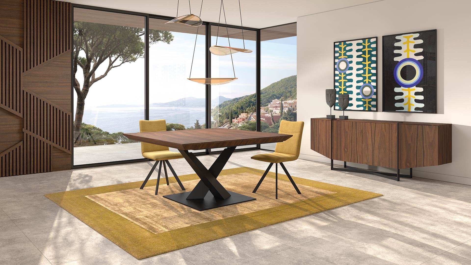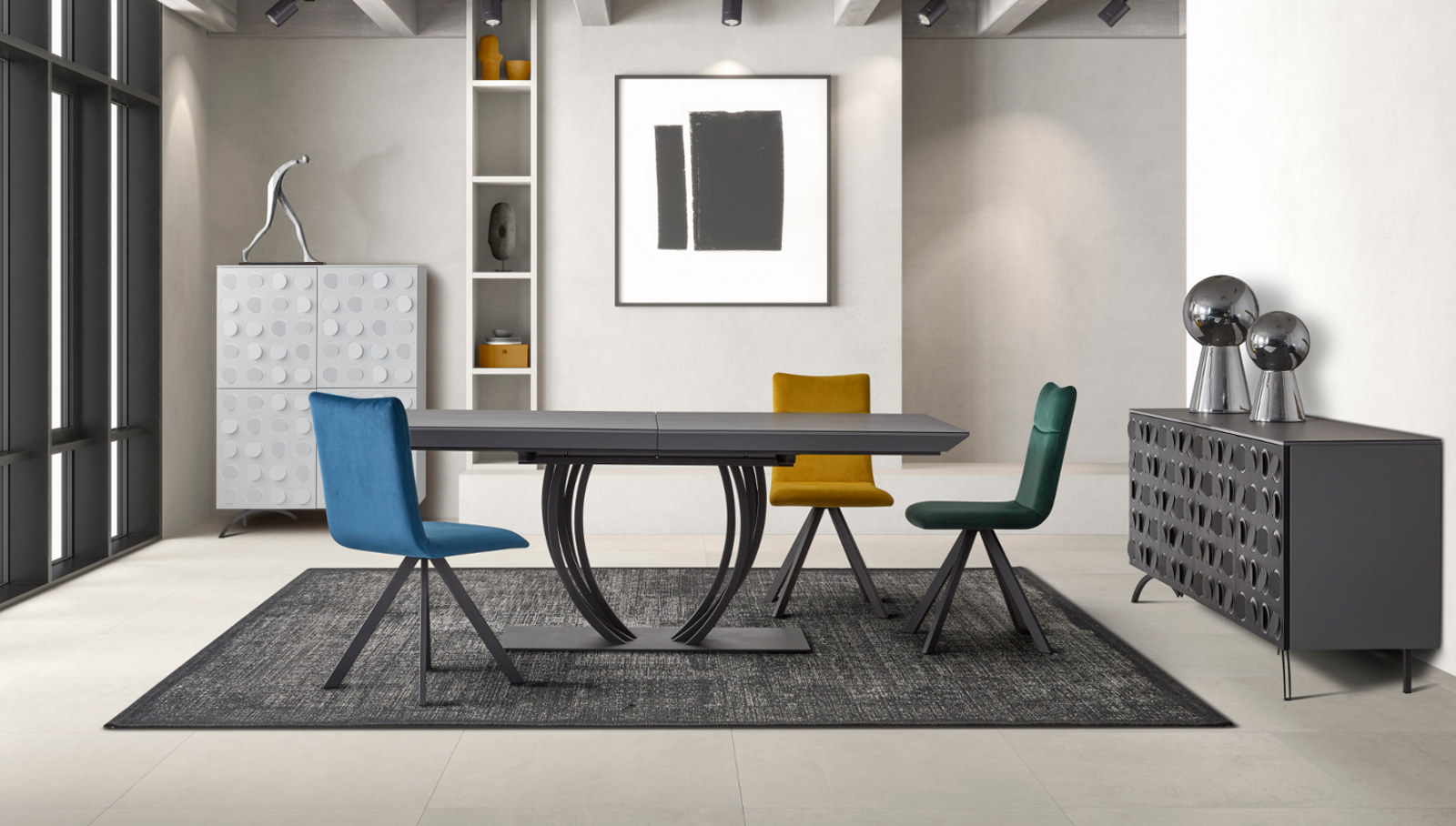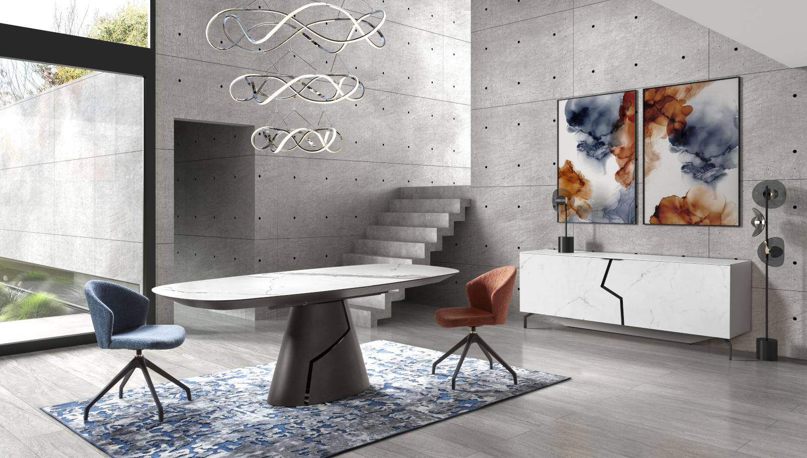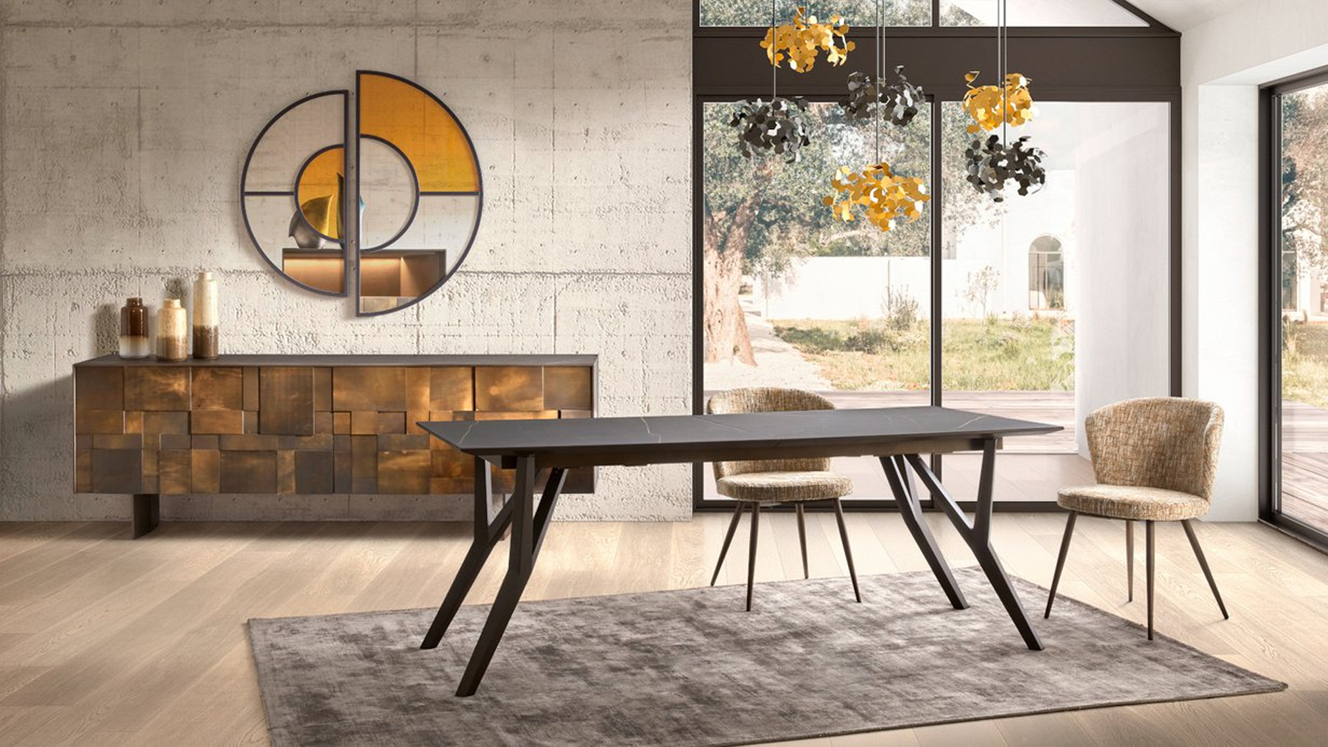 La salle à manger DESTINAA allie lignes arrondies et design structuré pour un style contemporain inspiré des années 70. Ses finitions raffinées et ses matériaux nobles créent un espace à la fois élégant, chaleureux et haut de gamme.